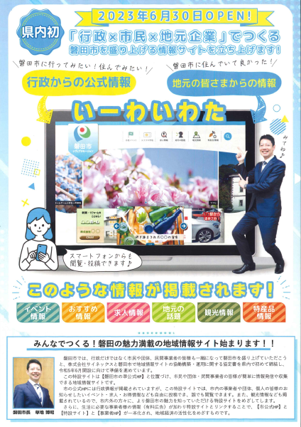 今までにない、だれでも無料で投稿・閲覧ができる、磐田市の準公式サイトが6月30日にオープンする予定です。